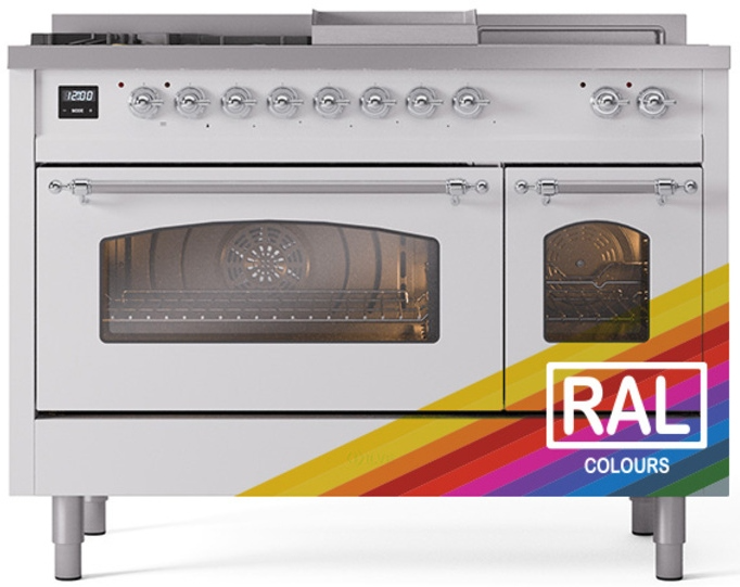 Introducing the new Nostalgie II 48" dual fuel range, a classic addition with a touch of innovation to any kitchen. This range feature sealed burners equipped with total black brass flame spreader that has a non-stick nanotechnological coating, heavy cast iron grates, 3.5 + 1.52 cu. ft. total double oven capacity and soft closing door system.Read More