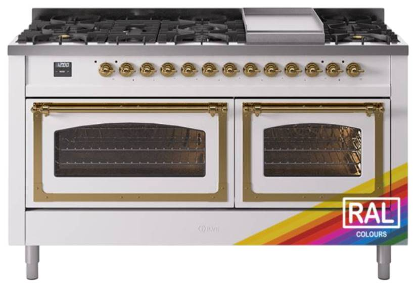 Introducing the new Nostalgie II 60" dual fuel range, a classic addition with a touch of innovation to any kitchen. This range feature sealed burners equipped with total black brass burner that has a non-stick nanotechnological coating, heavy cast iron grates, 3.5 + 2.3 cu. ft. dual oven capacity and soft closing door system.Read More