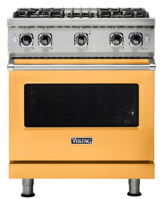 The Viking® 5 Series 30'' Daffodil Burner Gas Range blends professional performance with cheerful design. Equipped with powerful burners for precise heat control, its vibrant daffodil yellow finish brightens any kitchen, offering both style and versatility for everyday cooking.Read More
